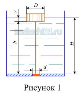 5.4 Определить вес поплавка диаметром D=20 см, который при слое бензина Н≥80 см обеспечивал бы автоматическое открытие клапана диаметром d=4 см (рис.1). Длина тяги h=74 см. Вес клапана и тяги принять 1,7 Н=0,173 кг. Относительный удельный вес бензина 0,75.