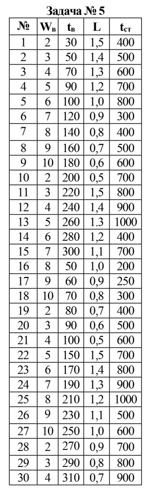 23.98 Определить коэффициент конвективного теплообмена и плотность теплового потока при движении воздуха со скоростью Wв при нормальных условиях и температуре tв по каналу, имеющему размеры поперечного сечения L к L и температуру tст.