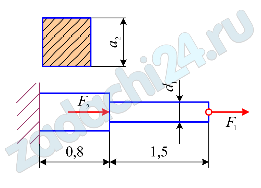 Для заданного ступенчатого стального бруса построить эпюры продольных сил и нормальных напряжений. Определить размеры поперечного сечения, проверить балку на прочность. Определить перемещение свободного конца бруса. Модуль продольной упругости Е = 2·105 Н/мм² (Данные взять из приложения А).