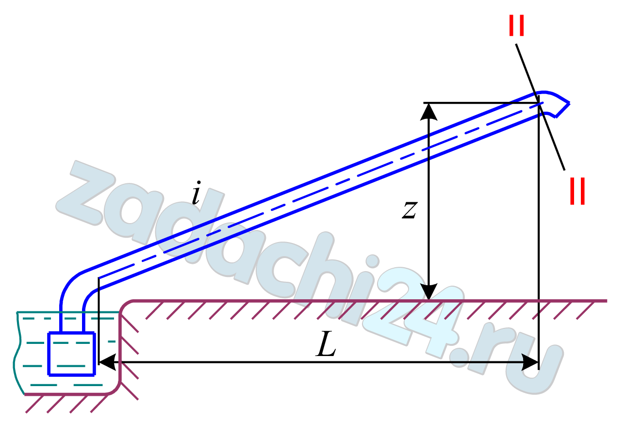 10.331 Для заполнения пожарного водоема используется трубопровод длиной L. Определить необходимый напор насоса, если возвышение водоема над источником Z, гидравлический уклоy i, свободный напор в конце линии Нсв.