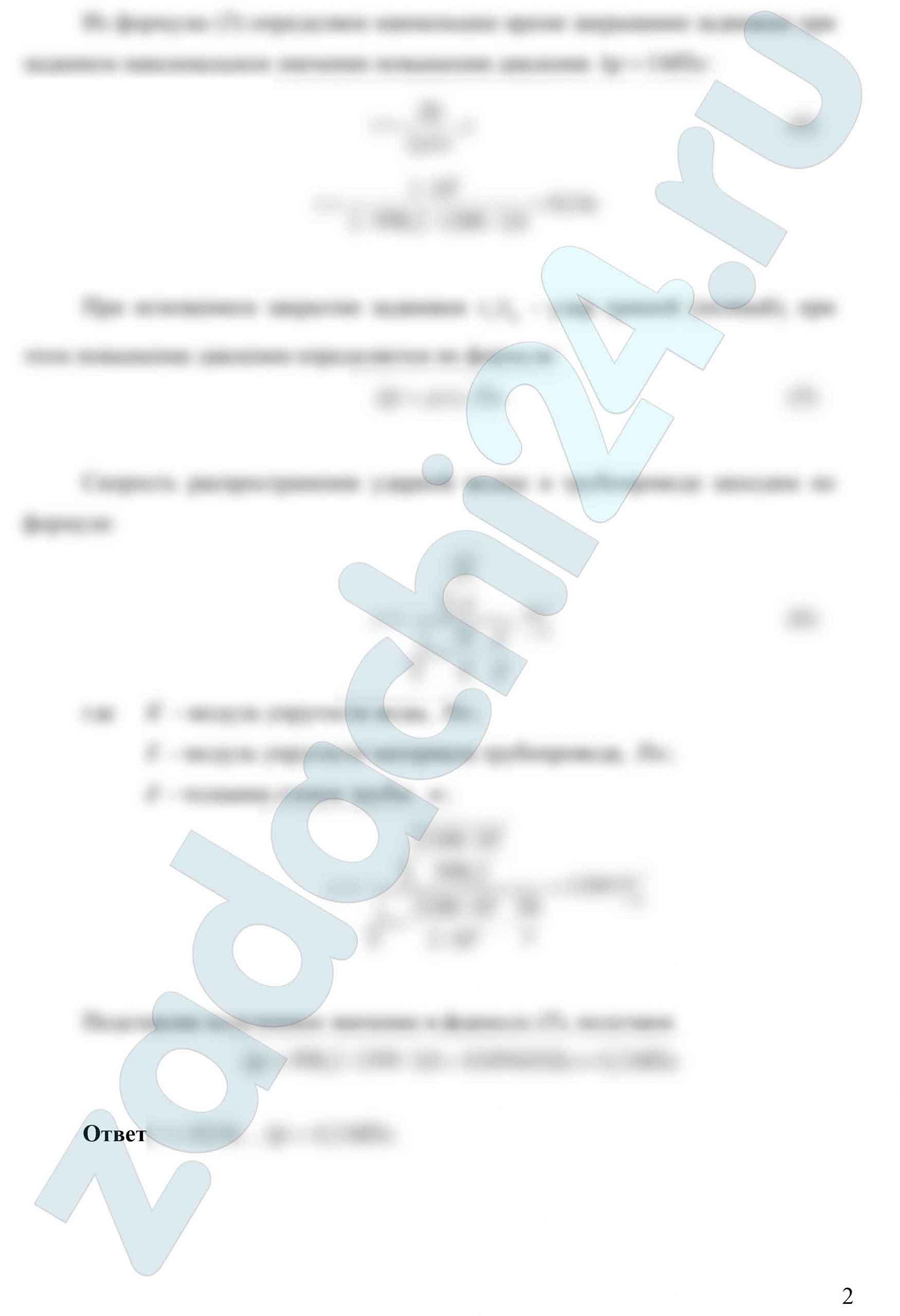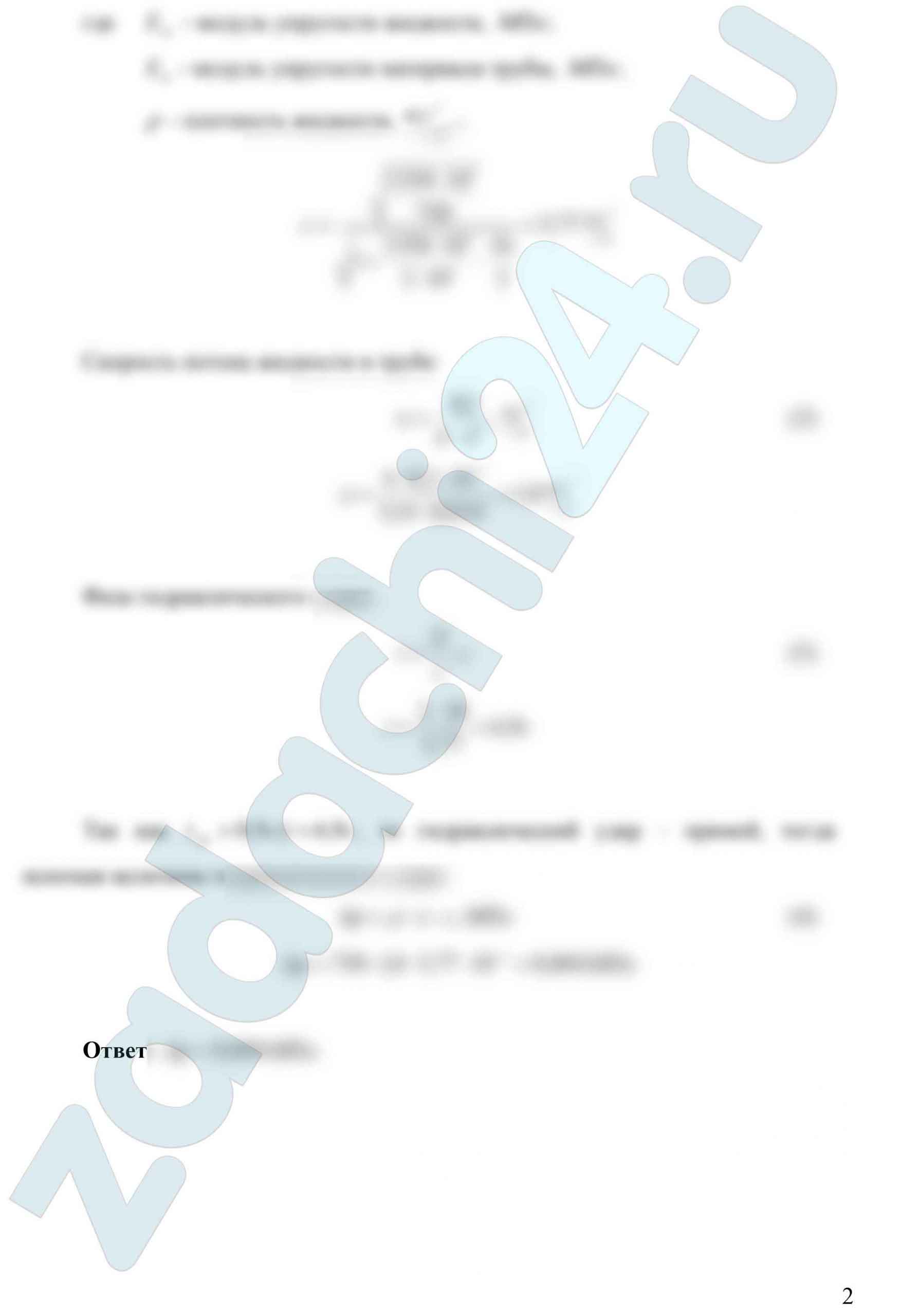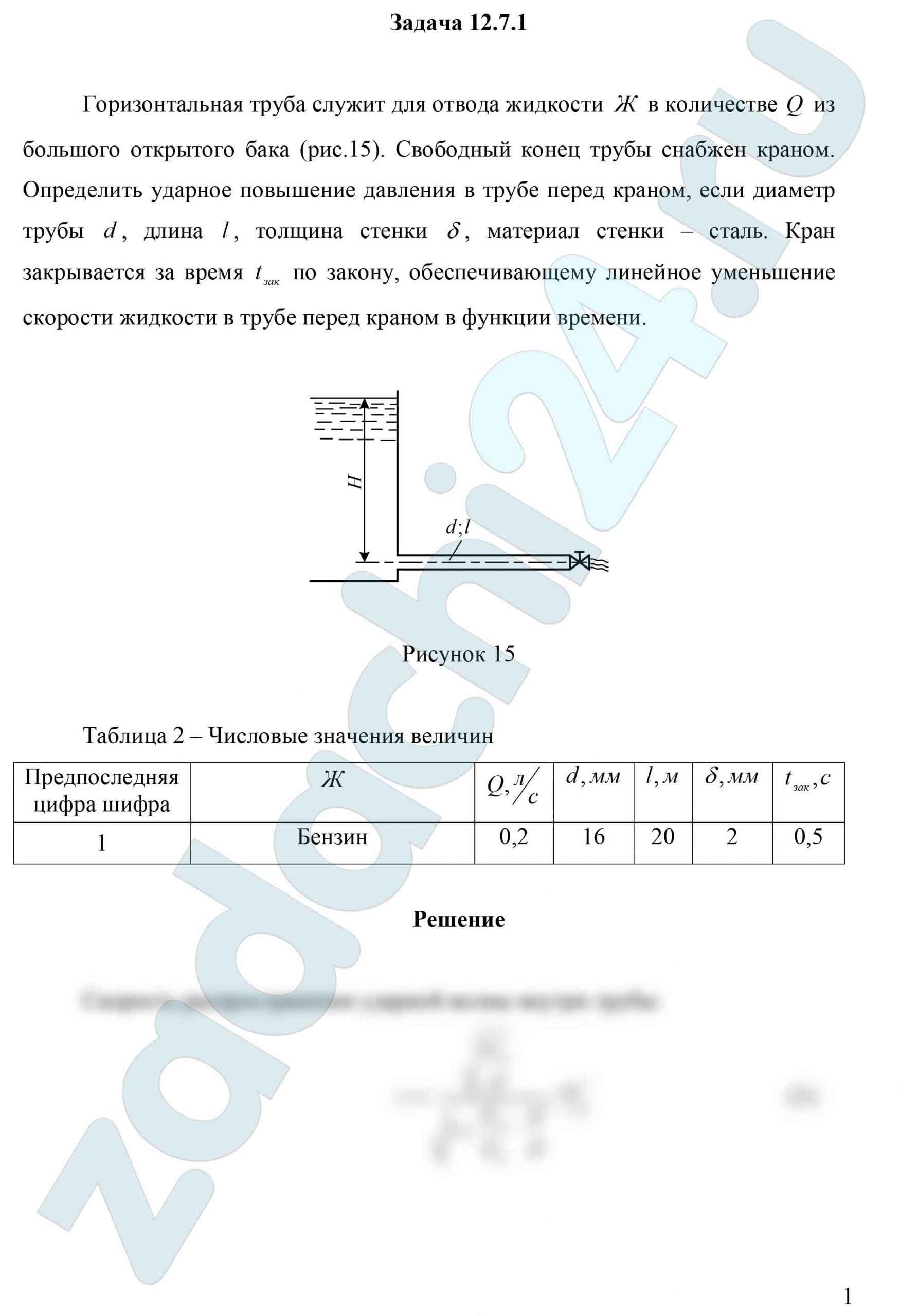 12.2 Трубопровод с размерами: диаметром d, толщиной стенок δ и длиной l пропускает расход жидкости при давлении р0. Определить, через сколько секунд при резком закрытии затвора ударное давление руд возле него будет наибольшим, а также величину этого давления. Затвор закрывается в течении времени tзакр. Исходные данные к задаче приведены в табл. 90.