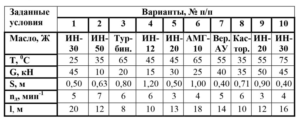 Определить принимая условную скорость движения рабочей жидкости в гидролиниях нагнетания θнаг = 5 м/c и слива θсл = 3 м/c, а температуру рабочей жидкости T = 35ºC: