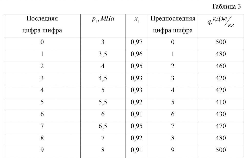 Таблица 1 — Числовые данные к задачам 2.1. Термодинамика