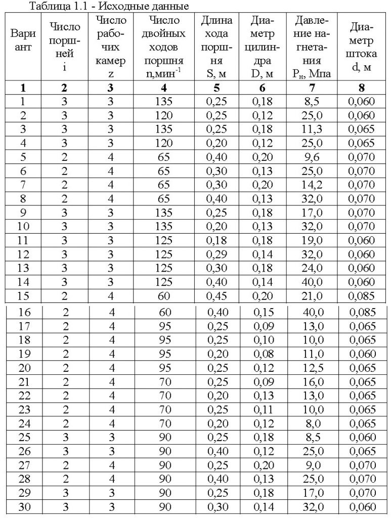 РАСЧЕТ ОСНОВНЫХ ПАРАМЕТРОВ РАБОТЫ ПОРШНЕВОГО НАСОСА