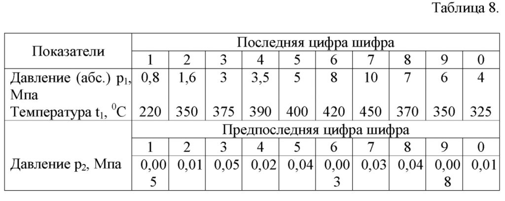 Величину p0 выбрать из табл.10 по последней цифре шифра, а величины T0 и p1 — по предпоследней цифре шифра.