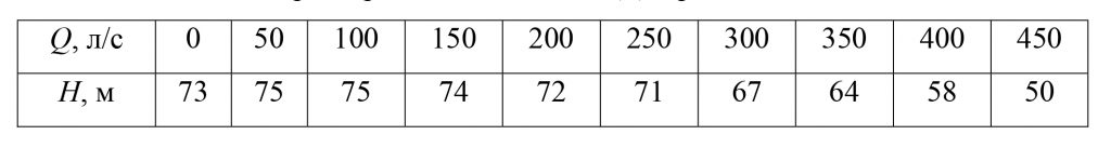 | Q, л/c | 0 | 10 | 20 | 30 | 40 | 50 | 60 |