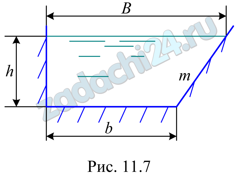 16.8 Определить, какой уклон необходимо придать дну трапецеидального канала (рис. 11.7) для пропуска расхода Q=2 м³/c при следующих данных: ширина канала по дну b=1,5 м, глубина наполнения h=95 см, коэффициент заложения откоса m=1,75, коэффициент шероховатости n=0,025.