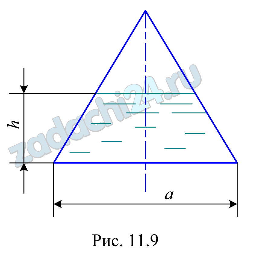 16.9 Определить уклон дна водосточной трубы (рис. 11.9), если сечение трубы — равносторонний треугольник, а=1 м, h=0,75 м, коэффициент шероховатости n=0,013. Расход воды Q=0,5 м³/c.