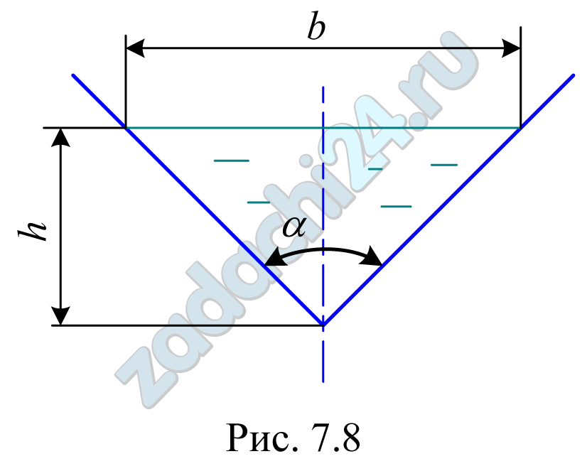 16.2 Жидкость движется в треугольном лотке (рис. 7.8) с расходом Q=50 л/c. Ширина потока b=0,8 м, глубина наполнения h=0,3 м. Определить, при какой температуре будет происходить смена режимов движения жидкости. График зависимости кинематического коэффициента вязкости жидкости от температуры показан на рис. 7.5.