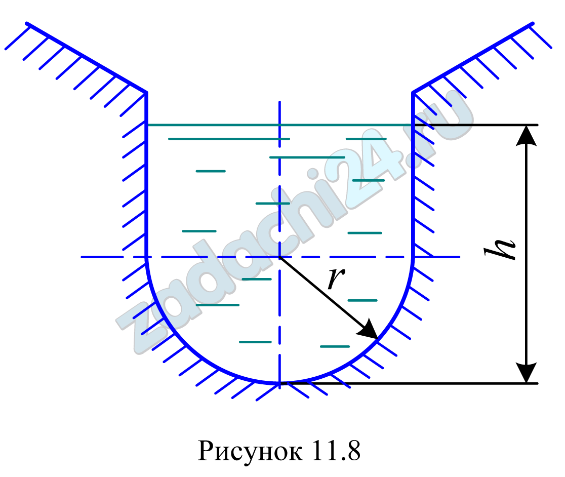 16.3 Определить уклон дна канала (рис. 11.8), если r=1 м, h=2,5 м, коэффициент шероховатости n=0,017. Расход воды Q=4 м³/c.