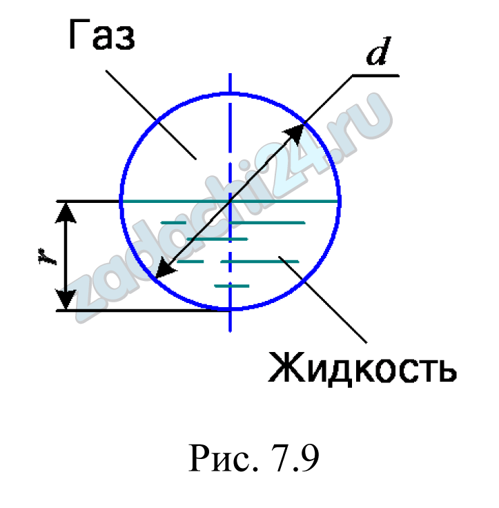 16.5 Жидкость движется в безнапорном трубопроводе (рис. 7.9) с температурой t=30 ºC. Трубопровод заполнен наполовину сечения. Диаметр трубопровода d=50 мм. Определить, при какой скорости будет происходить смена режимов движения жидкости. График зависимости кинематического коэффициента вязкости жидкости от температуры показан на рис. 7.5.