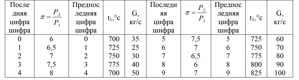 | Вариант | π=p2/p1 | t3, ºC | G, кг/c |