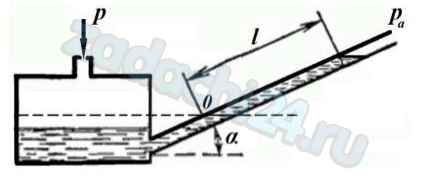 Атмосферное давление равно ра = 730 мм. рт. ст. Найти избыточное и полное давление, поданное в бочонок микроманометра. Жидкость считать идеальной, плотность спирта в ММН ρсп =810 кг/м³. Угол наклона стеклянной трубки α = (30 – 0,5·21) = 19,5°.