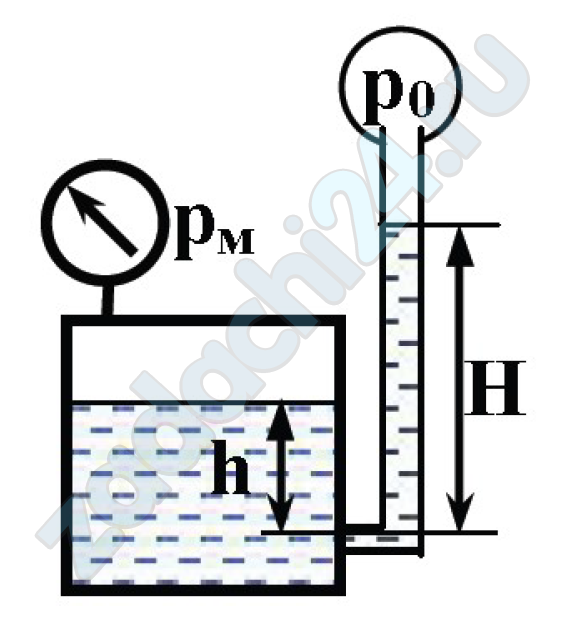 2.524 Определить показание манометра, если абсолютное давление на свободной поверхности трубки p0, уровень жидкости в трубке H, а уровень жидкости в баке h.
