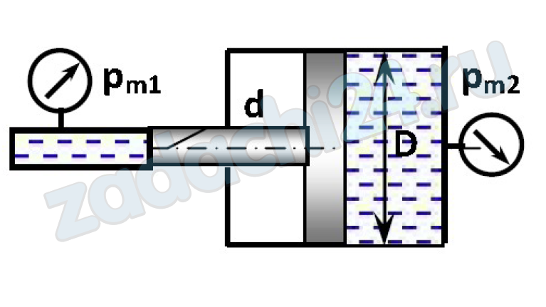 2.527 Определить показание манометра pm1, если дано показание манометра pm2, диаметры поршней D и d. Поршень находится в равновесии.