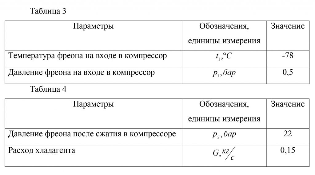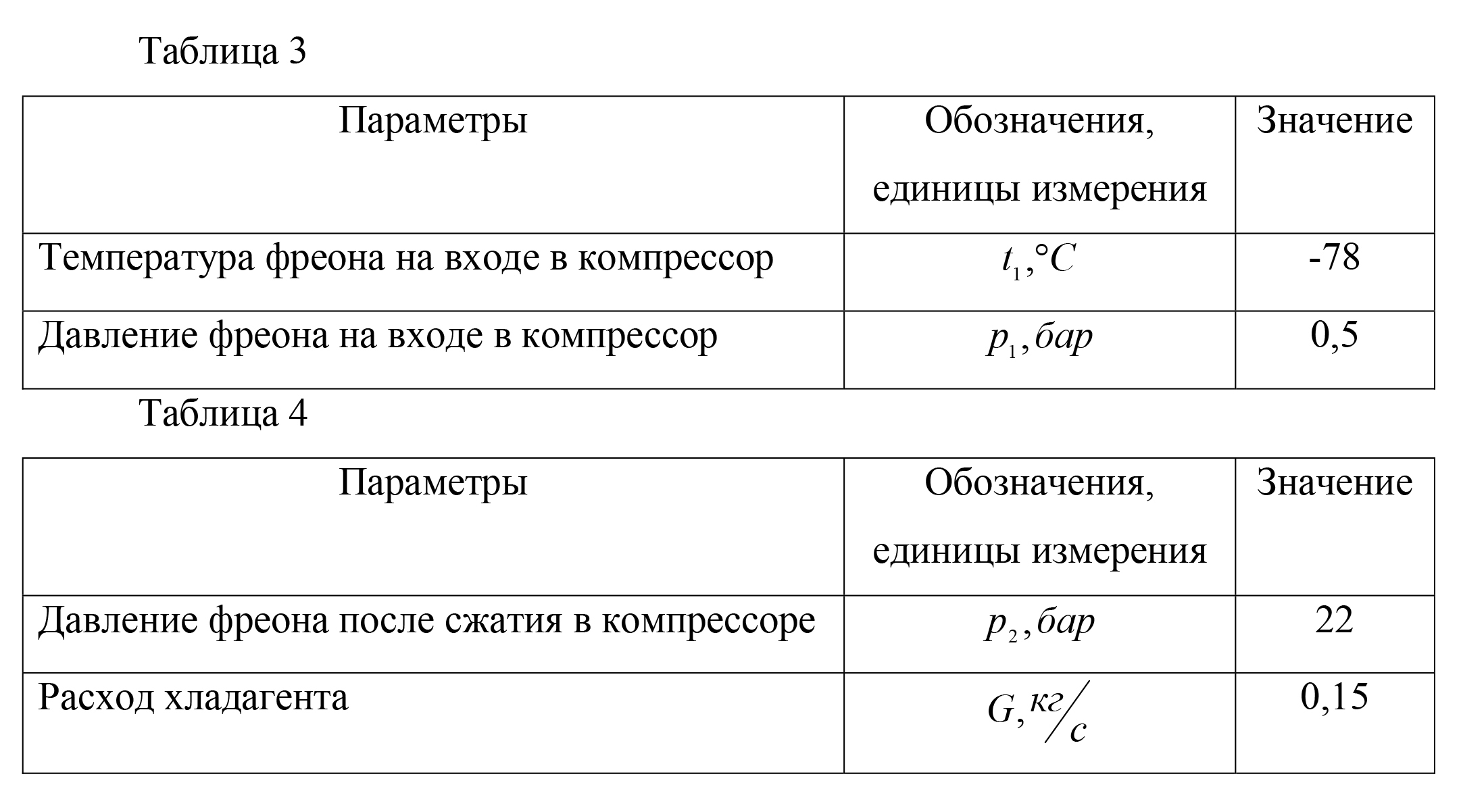 Определить: параметры pi, Ti, υi, ii, si для всех узловых точек цикла, холодильный и отопительный коэффициенты, теплопроизводительность, массу циркулирующего хладагента.