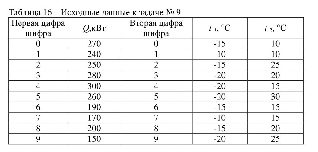 | Вариант | Q, кВт | t1, ºC | t2, ºC |