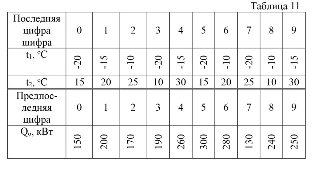 | Вариант | t1, ºC | t2, ºC | Q, кВт |