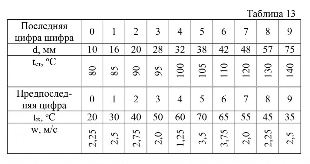 | Вариант | d, мм | l, м | ω, м/c | tж, ºС | tст, ºС | Теплоноситель |