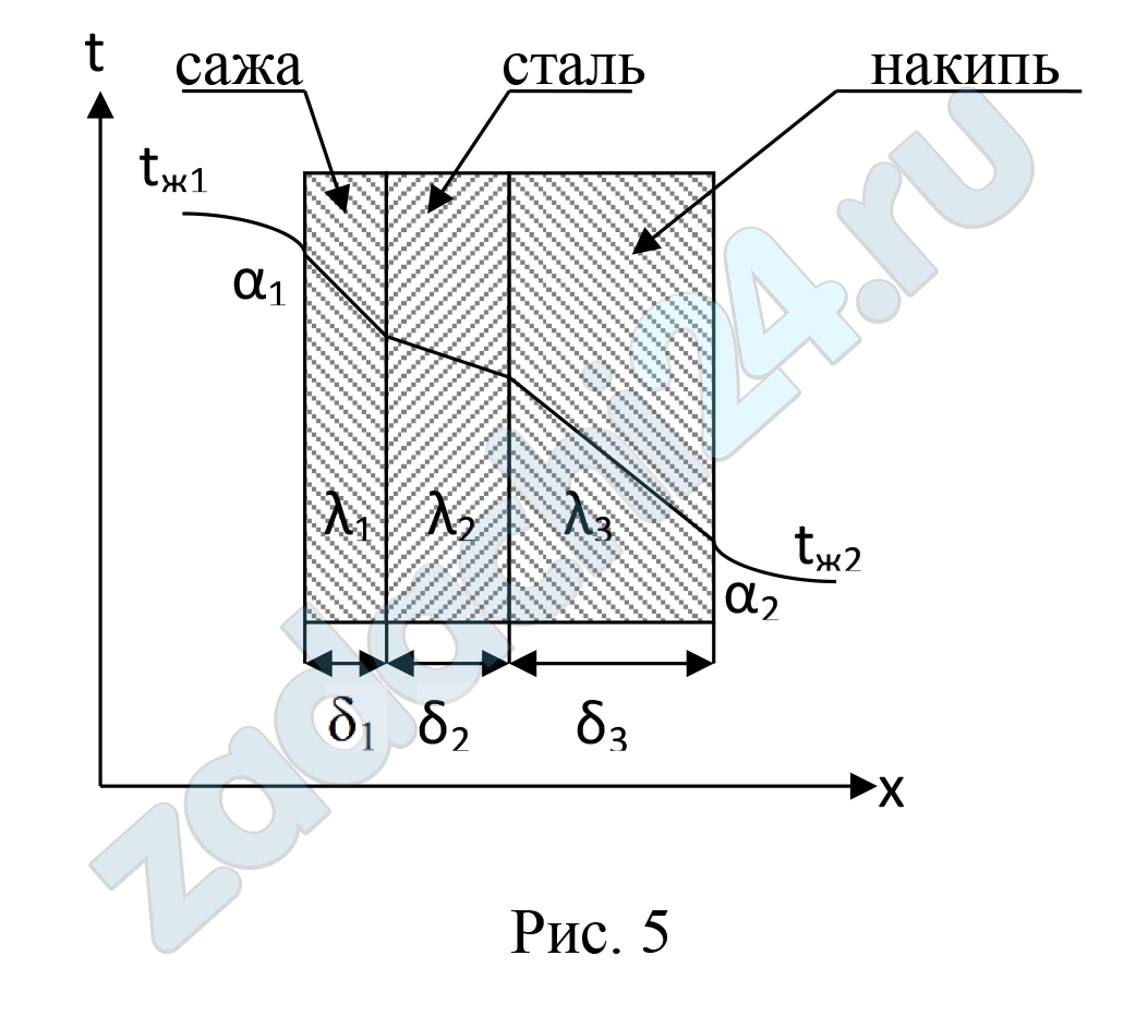 3) толщина слоя сажи со стороны газов δ1 и с теплопроводностью λ1 = 0,2 Вт/(м·К);