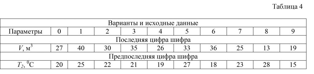 Масса кислорода m, кг Начальное давление р1, МПа Конечное давление р2, МПа