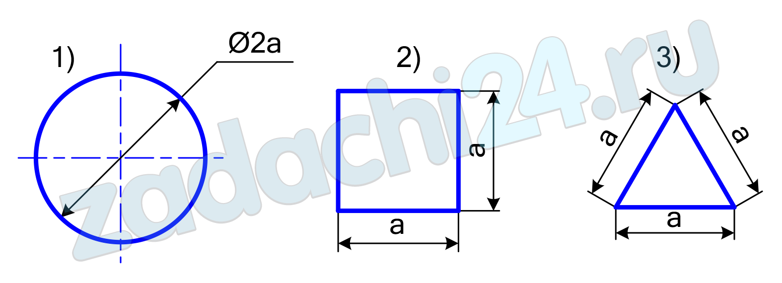 7.369 Определите, какое значение гидравлического радиуса R соответствует каждой из представленных на рисунке форм нормального сечения жидкости.