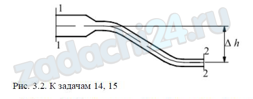 7.471 Определить среднюю скорость движения воды (рис. 3.2) в сечении 2-2, если в сечении 1-1 скорость V1 = 1,0 м/с, давление р1 = 1,1 ат. Давление в сечении 2-2 р2 = 1,0 ат. Центр тяжести сечения 2-2 находится ниже центра тяжести сечения 1-1 на величину Δh = 2,7 м. Потери давления на преодоление гидравлических сопротивлений равны hw = 1,2 м.
