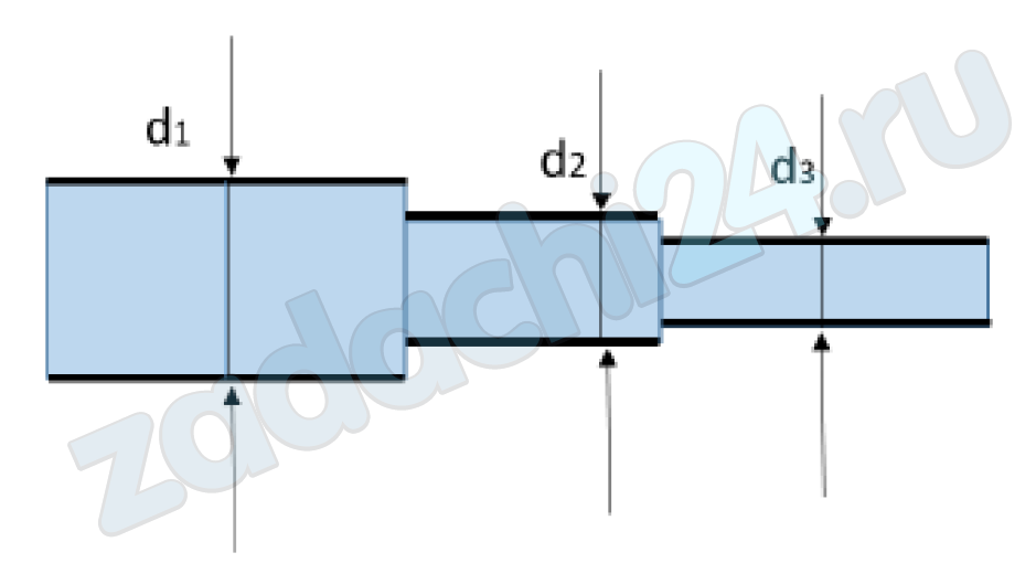 7.473 Определить расход и среднюю скорость потока в сечениях круглой трубы с диаметрами d1, d2 и d3, если в живом сечении радиуса d1 средняя скорость потока равна V1. Определить режим течения на всех участках трубопровода, если трубопровод заполнен водой.