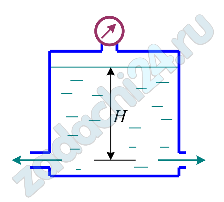 8.233 Из закрытого резервуара в атмосферу вытекает жидкость через круглое отверстие в тонкой стенке и внешний цилиндрический насадок диаметром d1 = d2 = 20 мм. Определить разность расходов DQ отверстия и насадка при Н = 1 м и давлении на поверхности рм = 0,5 атм.