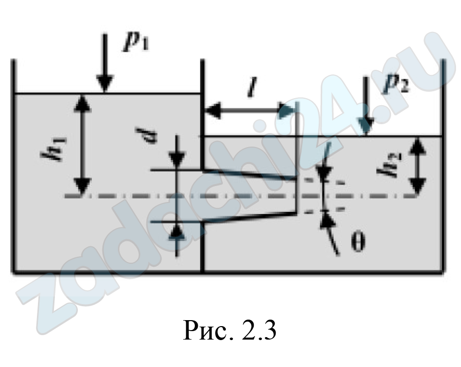 8.235 Определить расход воды, протекающей через цилиндрический, конический насадок или круглое отверстие в тонкой стенке (рис. 2.3) из одного бака в другой, по данным табл. 19. Значение давления дано в атмосферах, ра =1 атм =101325 Па.