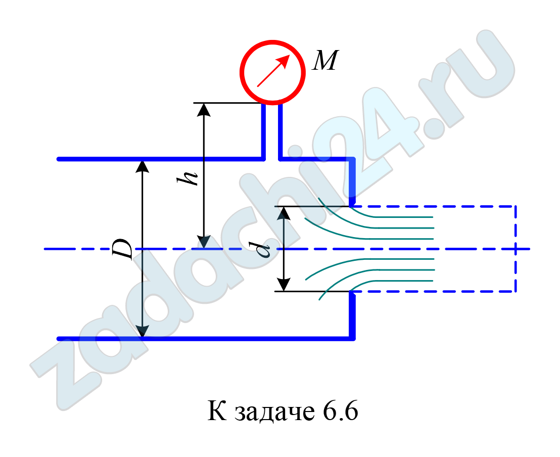 8.237 Определить расход воды Q через отверстие с острой кромкой диаметром d = 120 мм, выполненное в торце трубы диаметром D = 200 мм, если показание манометра перед отверстием М = 0,1 МПа и высота расположения манометра над осью трубы h = 1,3 м.