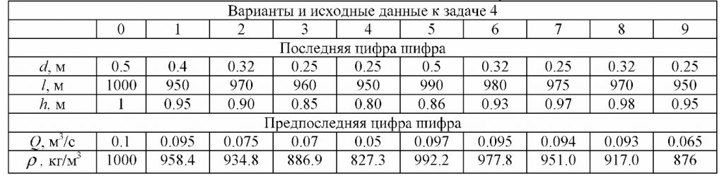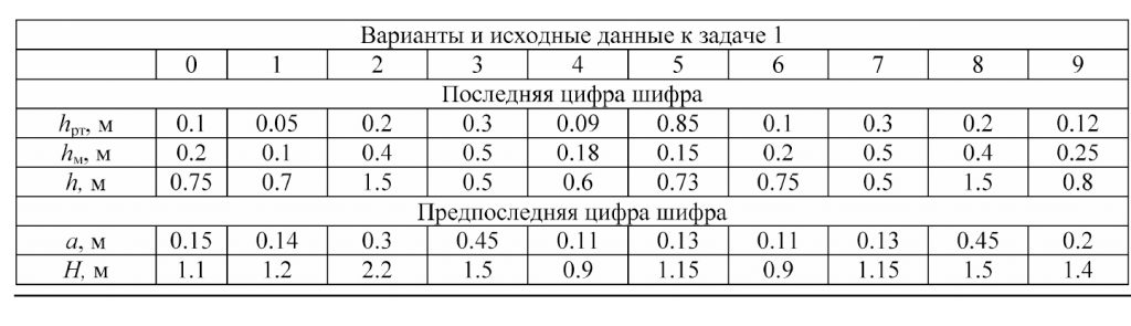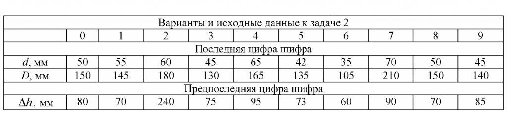 Таблица 1 – Варианты и исходные данные к задаче 3