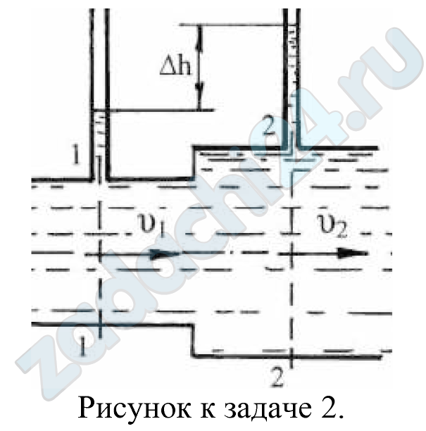7.375 Увеличение давления происходит при внезапном расширении трубы от d до D (рис. 2), которому соответствует разность показаний пьезометров Δh, установленных в сечениях трубы 1-1 и 2-2. Учитывая местные потери hм на внезапное расширение трубы, определить скорости υ1, υ2 и расход жидкости Q.