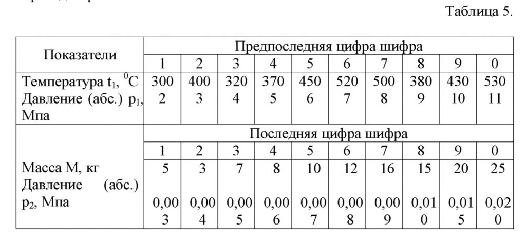 Рабочее тело – водяной пар, имеющий в начальном состоянии давление р1 и температуру t1 (табл. 5). Масса рабочего тела – M (табл. 5). Пар расширяется до давления p2 (табл. 5).