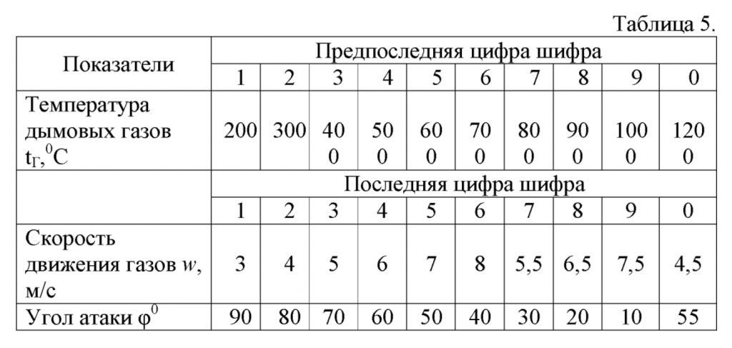 23.65 Определить коэффициент теплоотдачи при поперечном омывании потоком дымовых газов, имеющих температуру tг (табл. 5), трубы диаметром 100 мм. Скорость движения потока газов ω, угол атаки φ (табл. 5).