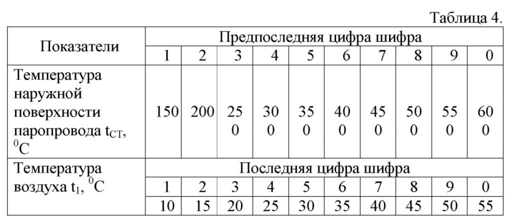 23.68 Вертикальный участок паропровода диаметром 150 мм и длиной 5 м охлаждается воздухом в условиях свободной конвекции. Температура наружной поверхности паропровода tСТ, температура воздуха t1 (табл. 4).