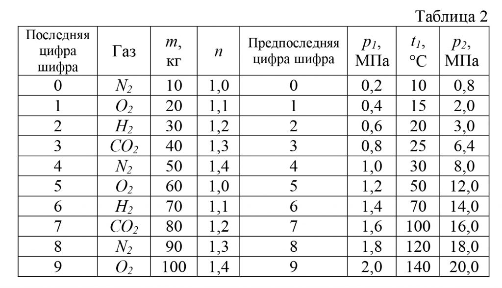 Изобразить процесс на pυ — диаграмме без соблюдения масштаба. Данные для расчета приведены в табл. 2.