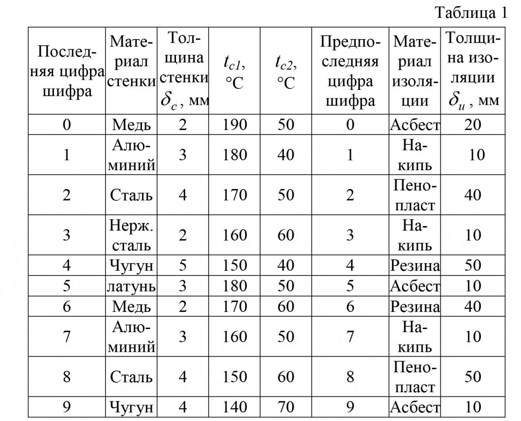 Данные для расчета приведены в табл. 1.
