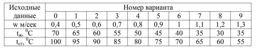 23.27 По трубе с внутренним диаметром d=50 мм течет вода со средней скоростью ω. Средняя температура воды tж, температура стенки трубы tст постоянна. Определить среднее значение коэффициента теплоотдачи и количество передаваемого в единицу времени тепла (линейную плотность теплового потока, Вт/м), если относительная длина трубы l/d=100.