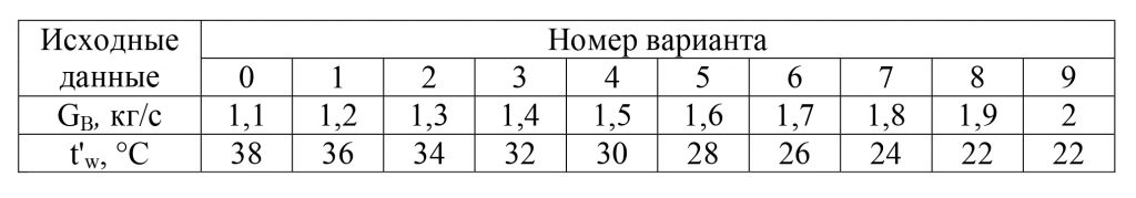 — расход охлаждающей воды Gω=1,25 кг/c;