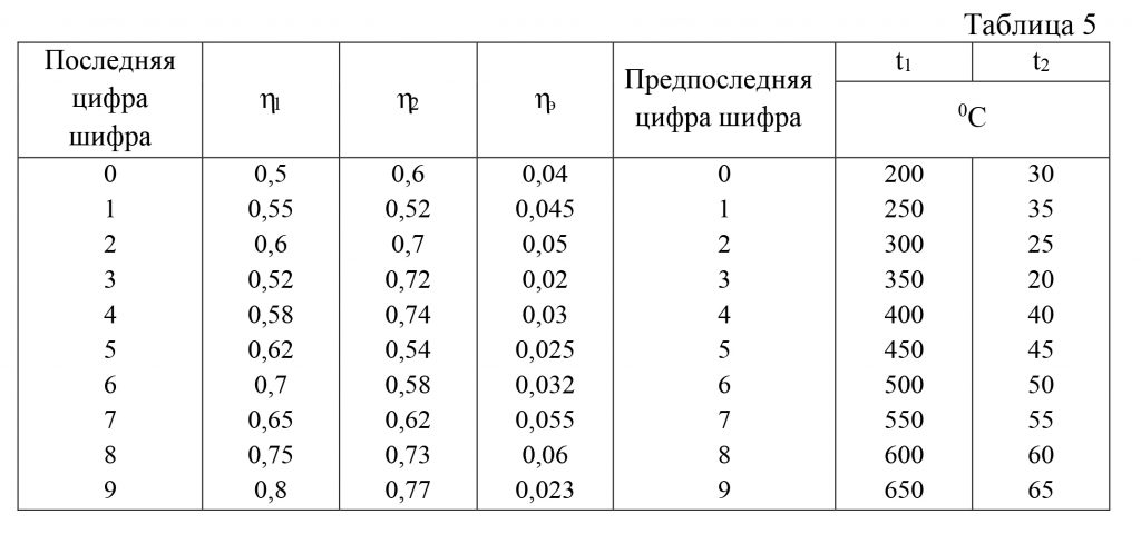 Определить q при наличии экрана со степенью (коэффициентом) черноты εэ (с обеих сторон). Данные, необходимые для решения задачи, выбрать из таблицы 5.
