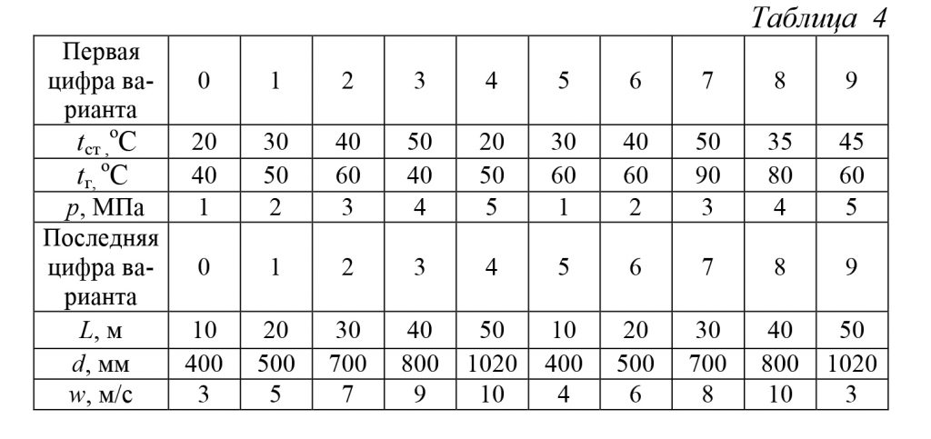 Определить тепловой поток от газа к внутренней поверхности участка газопровода длиной L метров и диаметром d, мм, если температура стенки трубы tСТ, ºС, а температура газа в трубе tГ, ºС. Линейная скорость газа ω, м/c. Газ — метан. Давление в трубопроводе р, МПа.
