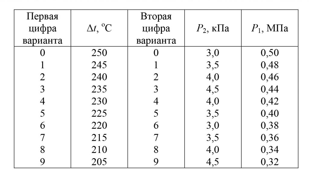 Данные, необходимые для решения задачи, выбрать из таблицы 2.