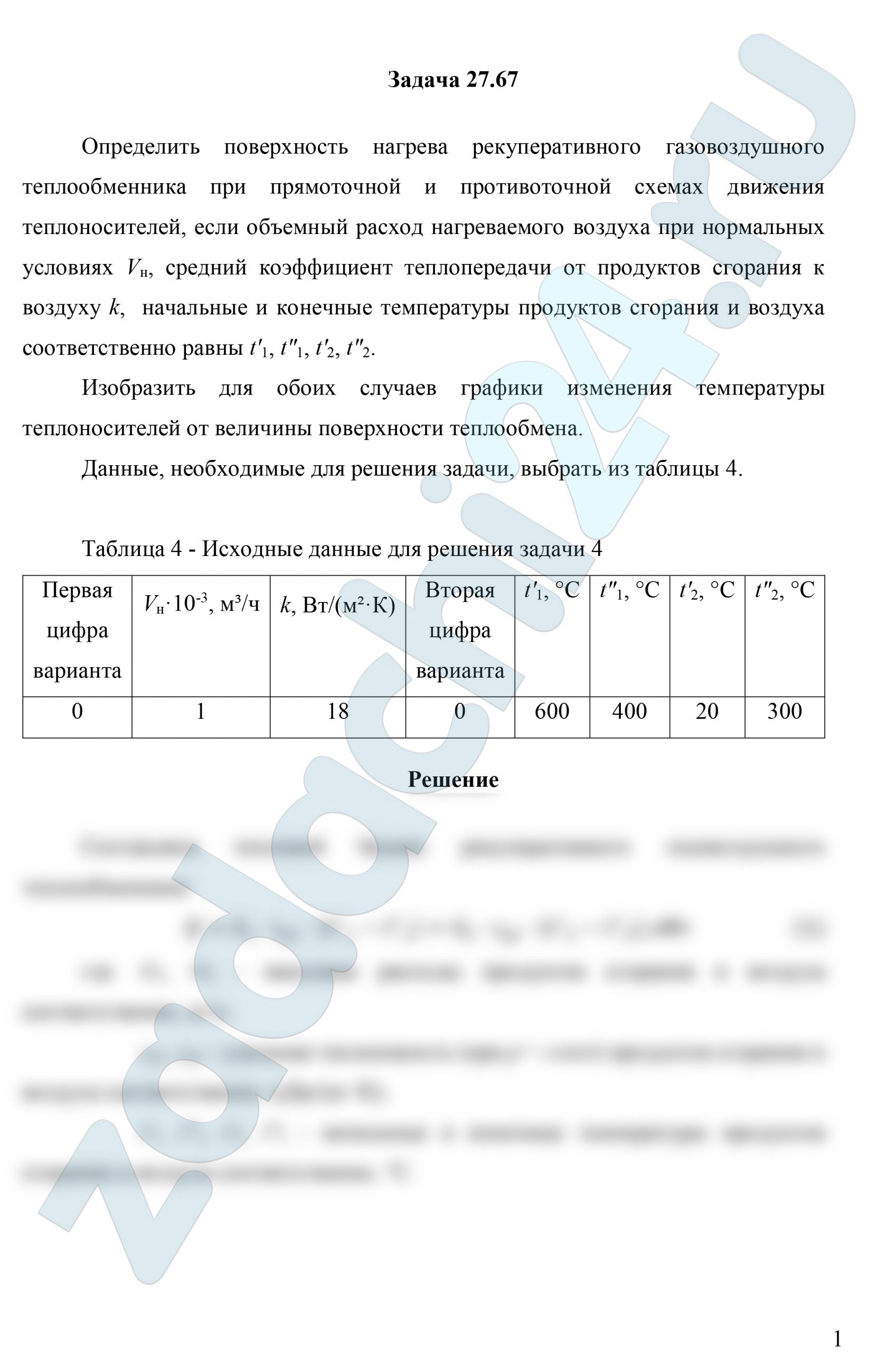 Данные для решения задачи, выбрать из таблицы 1.