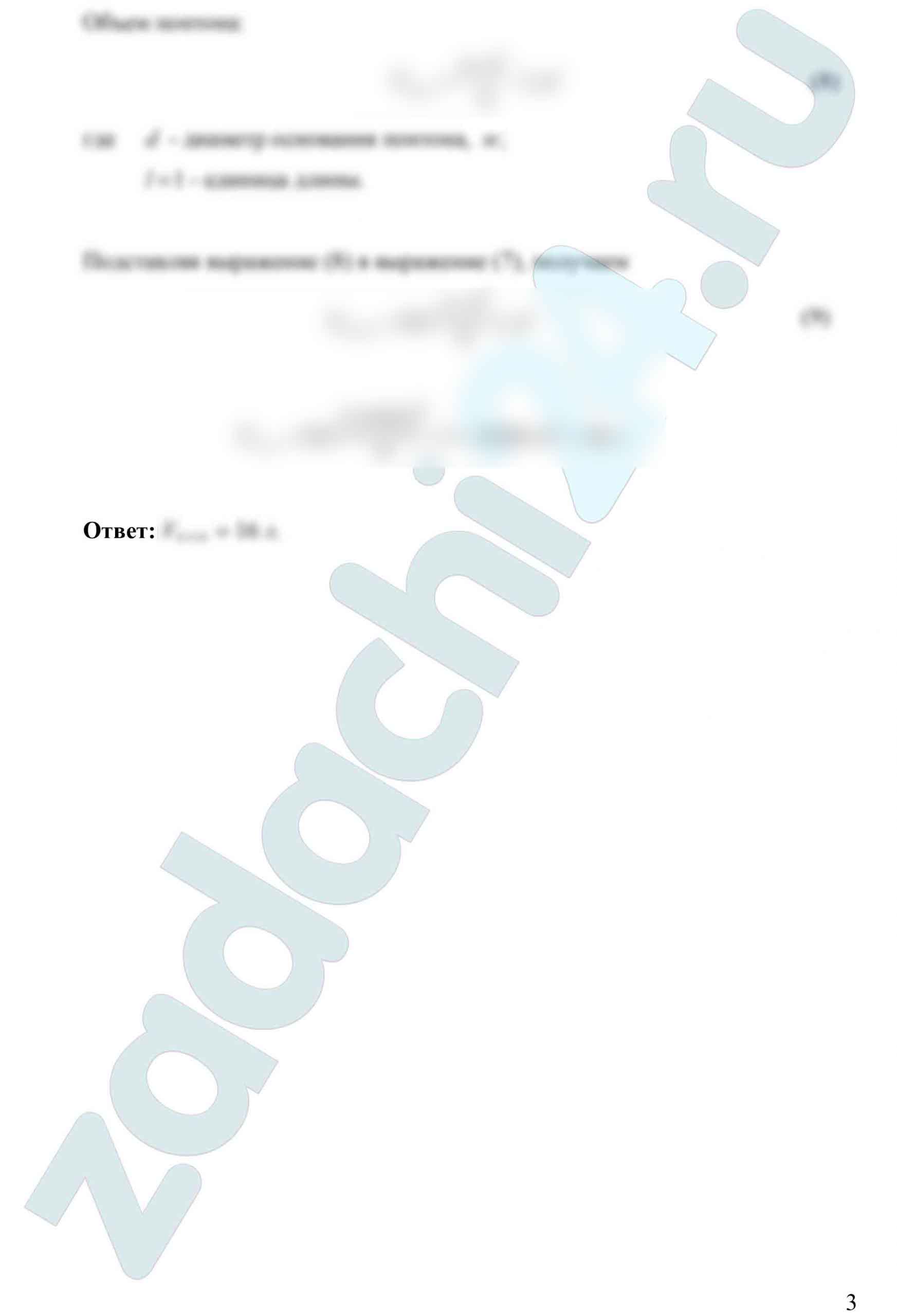 5.68 Основание понтона, представляет собой цилиндр с положительной плавучестью. Определить объем надводной части цилиндра незагруженного понтона, не единице его длины, если диаметр поперечного сечения цилиндра составляет d, м, плотность материала, из которого он изготовлен, равна ρ, а плотность воды ρв = 1000 кг/м³.