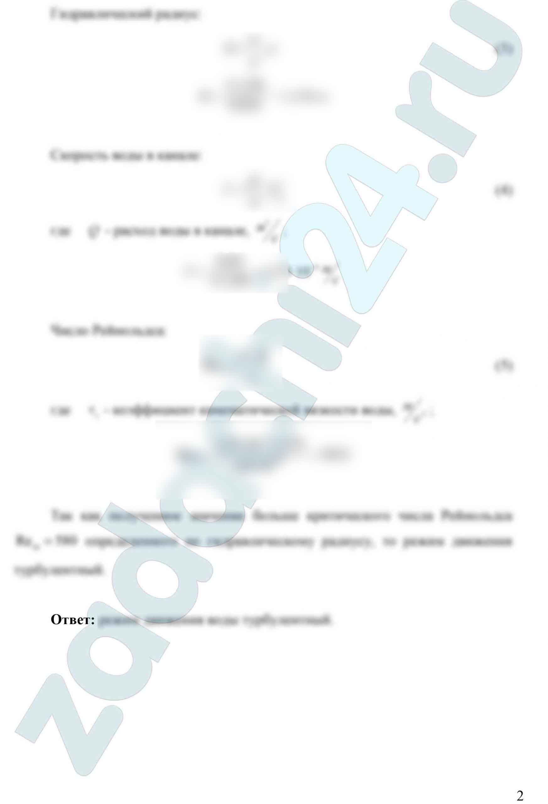 7.280 Определить режим движения воды в канале трапецеидального сечения. Ширина канала по дну составляет b, м, глубина воды в канале h, м, коэффициент заложения откосов боковых стенок m = 1,6. Расход воды в канале равен Q, м³/с. Коэффициент кинематической вязкости воды в канале νв равен 0,8 сСт (сантистокс).