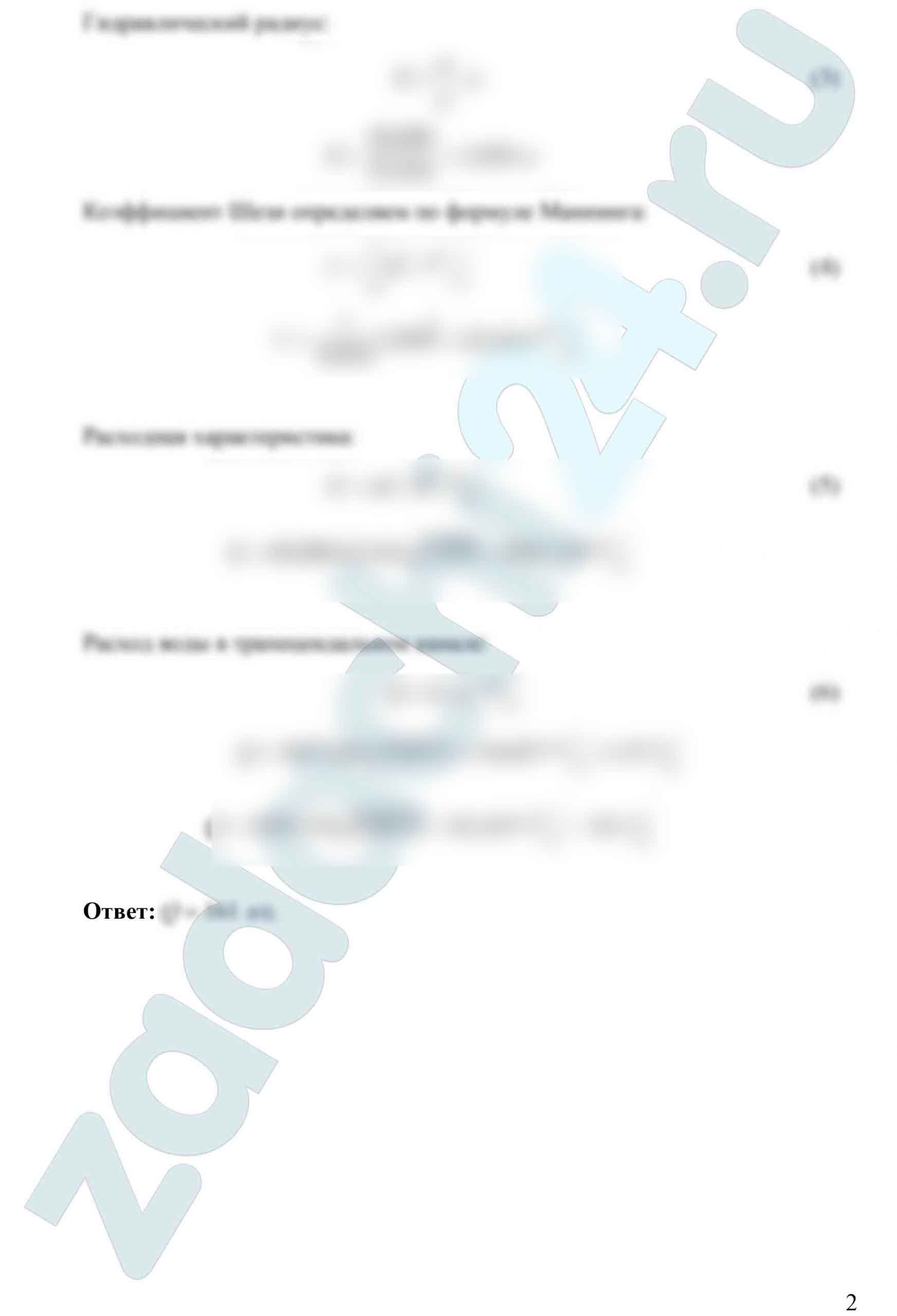 7.281 Определить расход воды в канале трапецеидального сечения при равномерном движении жидкости в нем. Ширина канала по дну равна b, глубина воды в канале равна h, коэффициент заложения откосов m = 2. Продольный уклон дна i составляет 0,0014. Коэффициент шероховатости поверхности русла n = 0,018.
