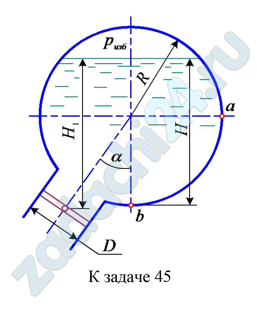 2) величину и направление силы давления нефти на цилиндрическую часть ab поверхности резервуара.