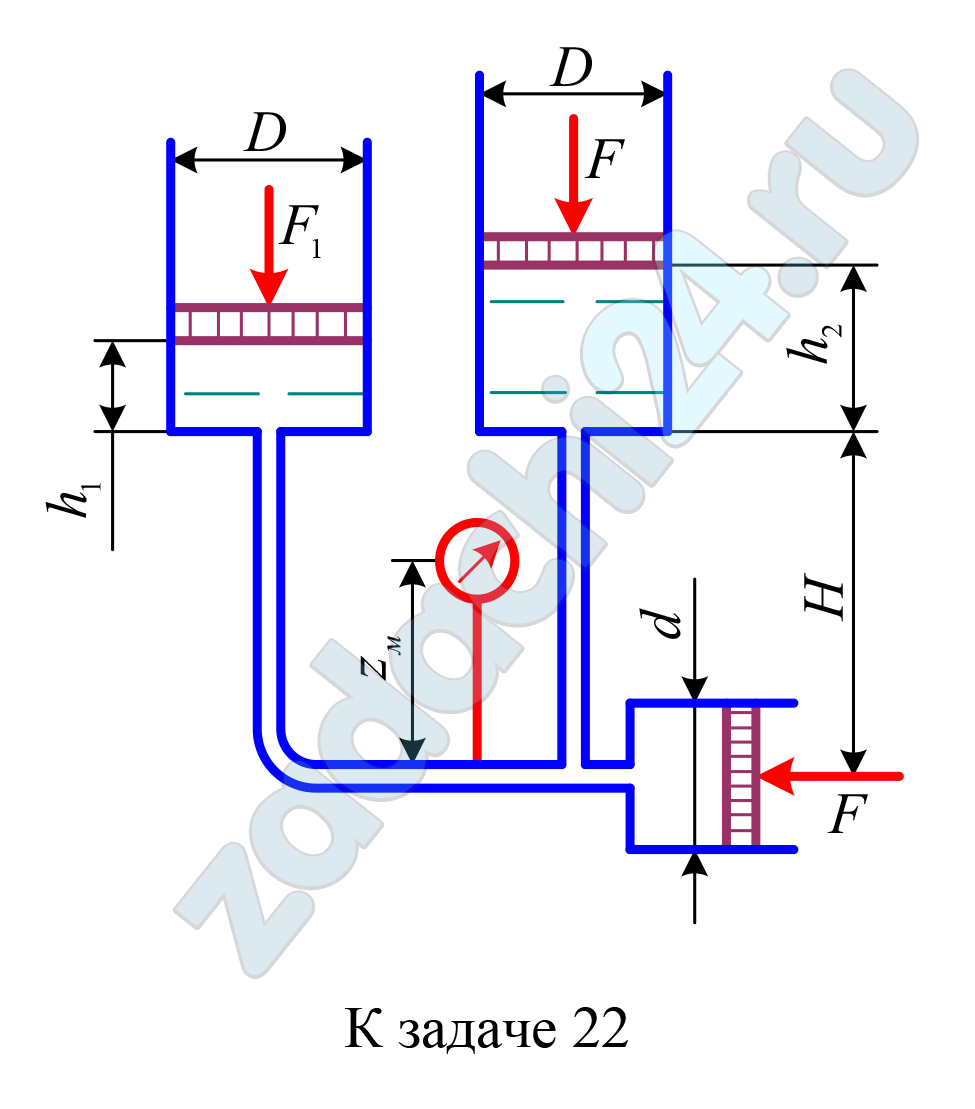 Определить уровни масла h1 и h2, а также показание pм механического манометра, установленного на высоте zм.