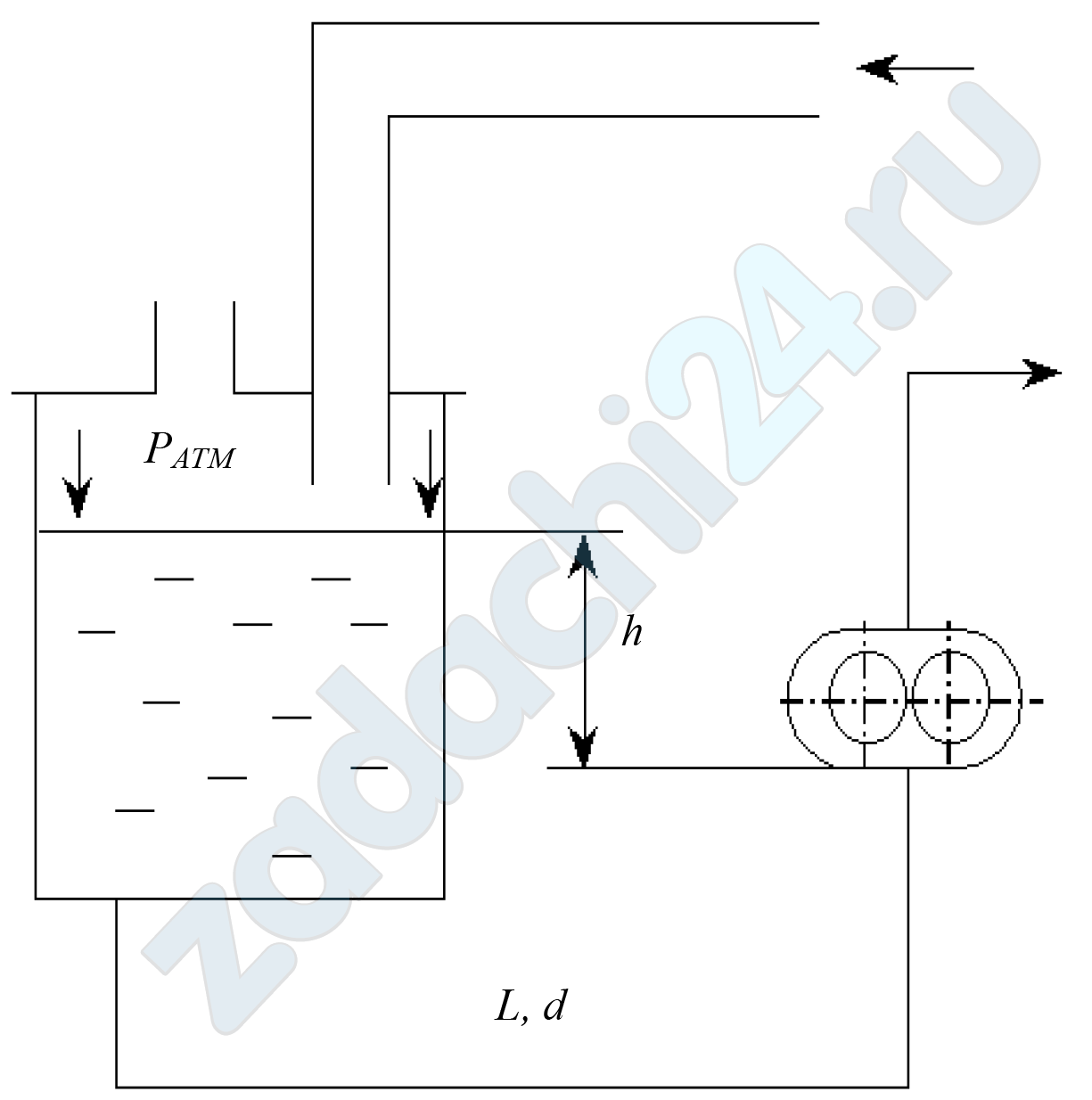 Длина стального всасывающего трубопровода L, диаметр d, шероховатость трубы Δ. Входное сечение насоса расположено ниже свободной поверхности в масляном баке на h. Местные потери в трубопроводе принять равными 10% потерь на трение по длине.